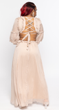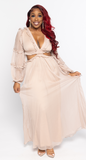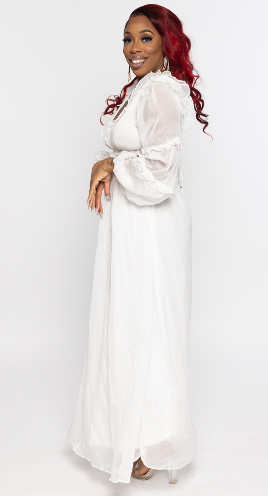 - Silky Chiffon Long Sleeve Back Ruffle Maxi Dress