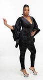 Add this wide bell sleeeve glitter velvet jumpsuit to your collection
