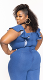 - Short Ruffle Sleeve Wide Leg Jumpsuit