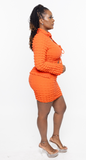 • Popcorn Long Sleeve Open Tie Front Top/ Mini Skirt