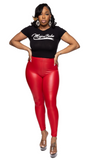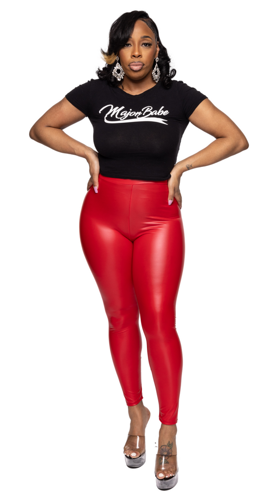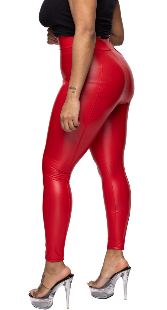 Get ready to turn heads in these red faux leather leggings, available in sizes S-L and XL-3X. Made with high-quality materials, they're sure to add a touch of edgy style to any outfit. Perfect for a night out or a bold daytime look, these leggings will be a staple in your wardrobe.