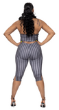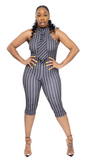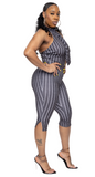 Get ready to strut your stuff in this halter and capris set! The front tie and matching grey and white stripes make this outfit a must-have for any fashion-forward individual.
