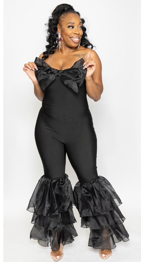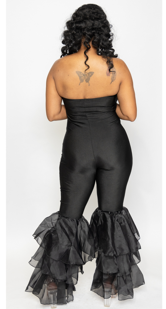 Upgrade your wardrobe with our stunning Disarrange black jumpsuit. Perfect for turning heads, this jumpsuit is sleek, stylish, and sure to make a statement.