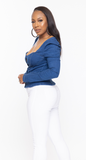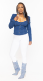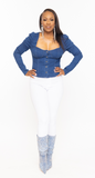 - heart shaped neckline fitted denim top