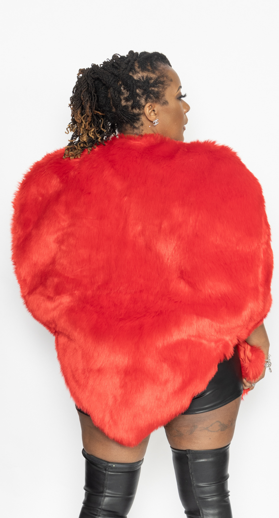 This Heart Shaped Red Fur Vest is just purr-fect for pairing with a lace jumpsuit or leather shorts and thigh-high boots!