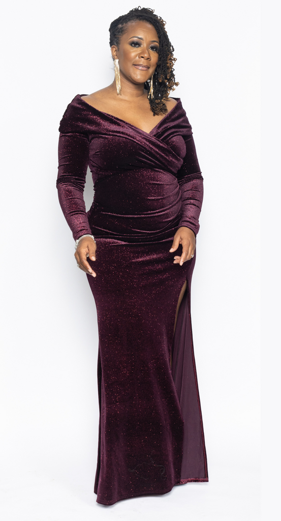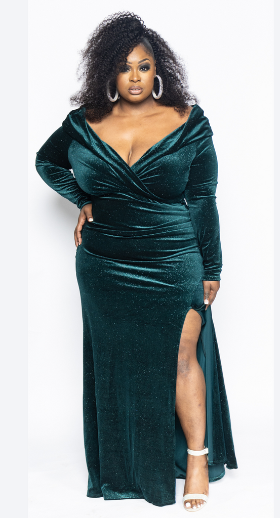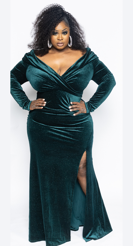 Add some regal flair to your wardrobe with the Imperial Dress. This velvet down dress features elegant shimmers of hunter green and burgundy, and its flowy design includes a trendy split for added movement. Perfect for showing off your royal fashion sense.