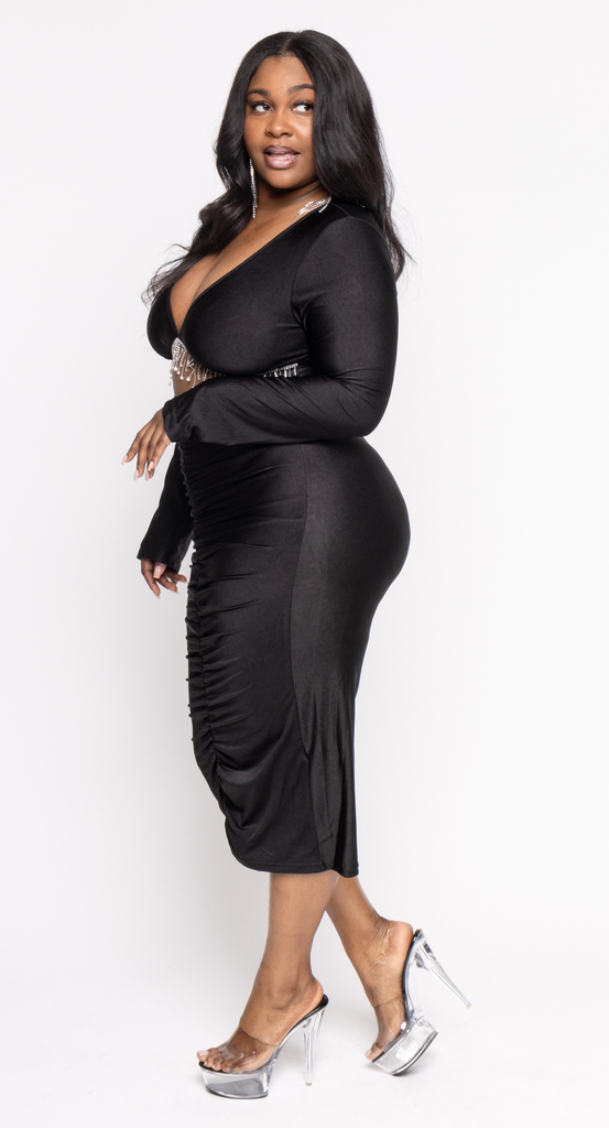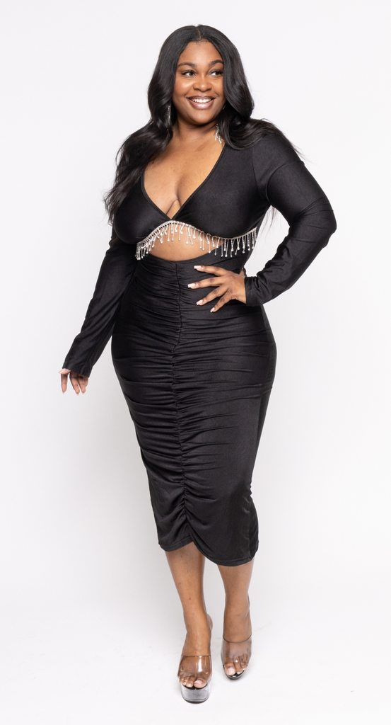 This Sexy Dress that highlights the underboob with diamonds dangling is Perfect For a night out on the town
