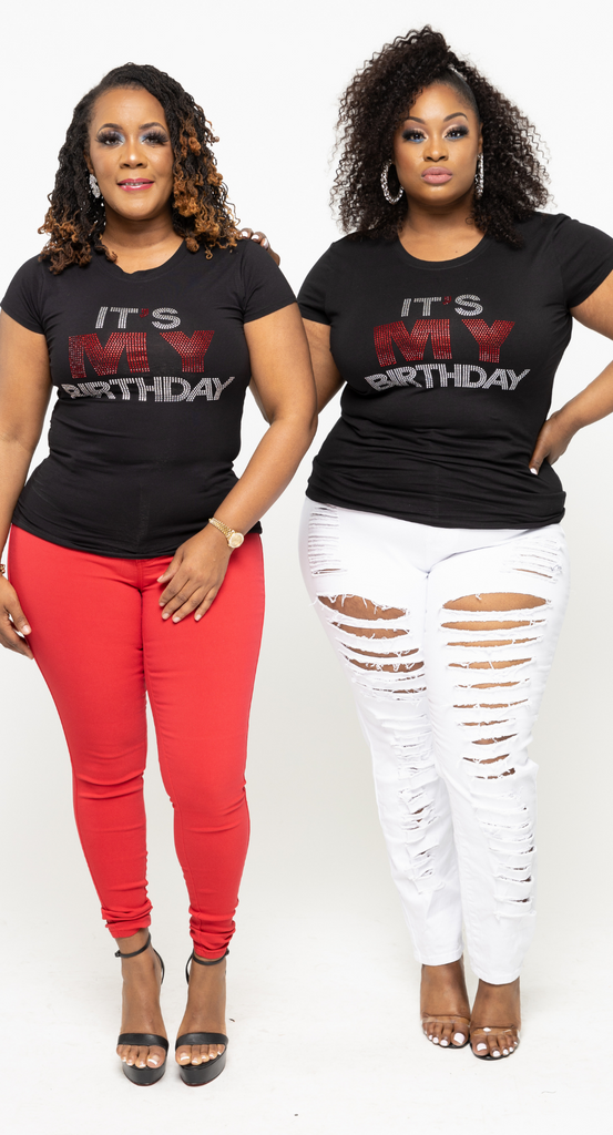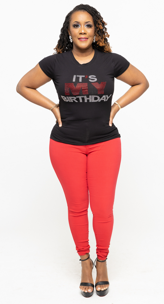 The perfect blinged t-shirt for all the birthday! The words are It's My Birthday