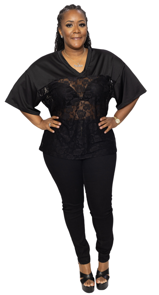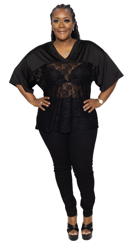 This jersey-style lace shirt is a versatile piece that can be worn as both a shirt and a dress. Available in regular and plus sizes, it's perfect for any body type. Embrace your unique style and rock this piece with confidence!