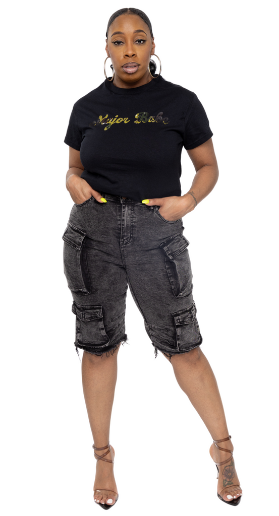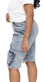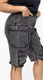 Get ready to rock some serious style with these cargo acid wash Bermudas in blue and black. Not only do they look cool, but they also have great stretch for maximum comfort. These shorts are a must-have for any wardrobe!