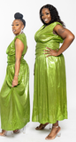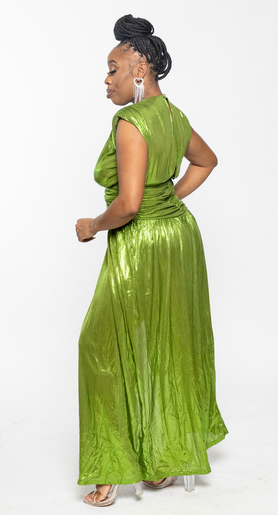 Wow the crowd in our Loyalty Dress, the perfect choice for your next gala or banquet! The metallic green color will have you shining, making you the star of the event. Don't miss out on this stunning dress!