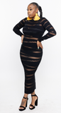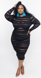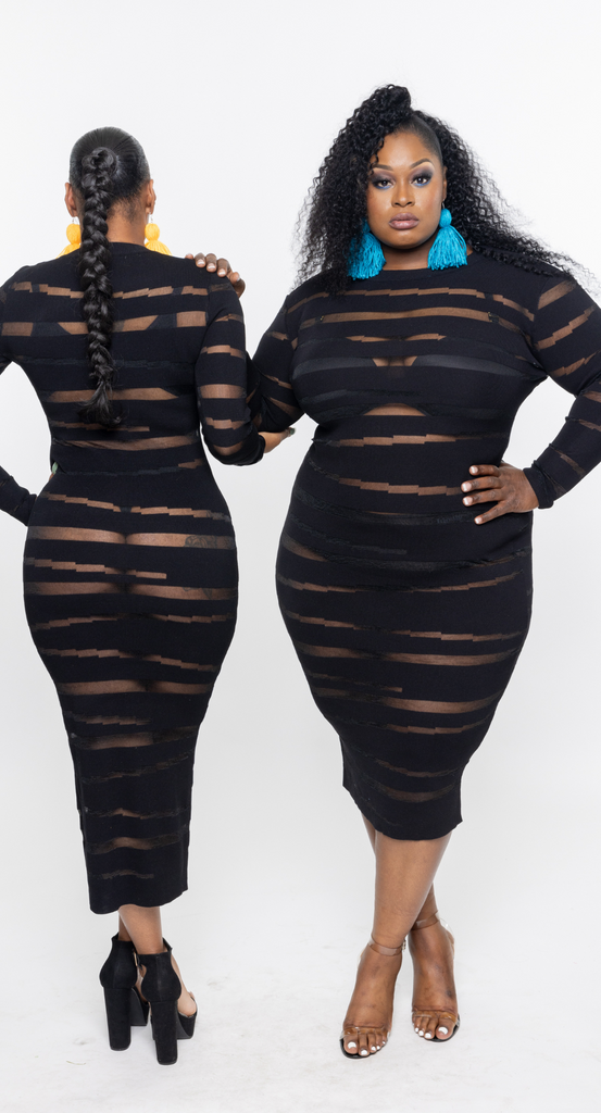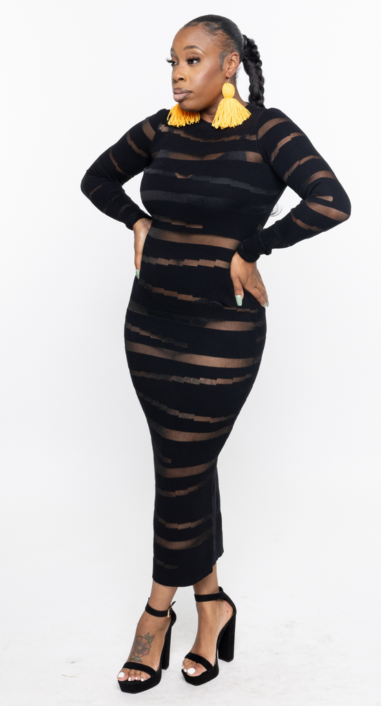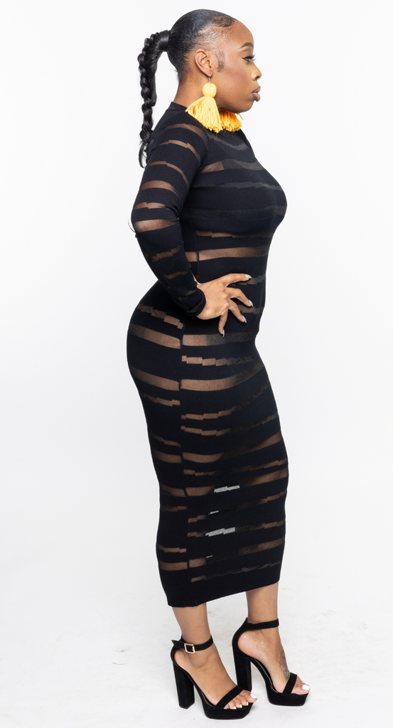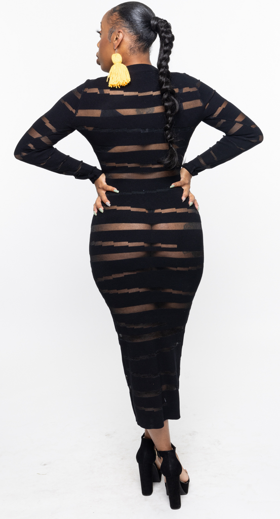 • Long Sleeve Round Neckline Sheer Stretch Dress