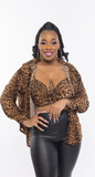 - Long Sleeve Collar Animal Printed Top / Bralette