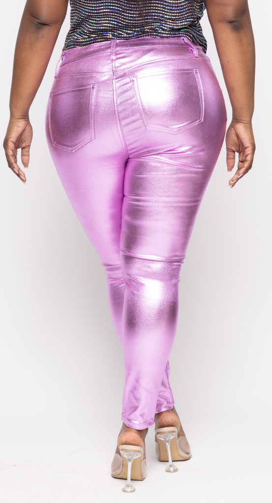 Upgrade your wardrobe game with these Orchid Pants in metallic lavender. Now available in plus size, these pants will add a touch of sparkle to any outfit. Who says comfort can't be stylish? These pants are here to prove them wrong!