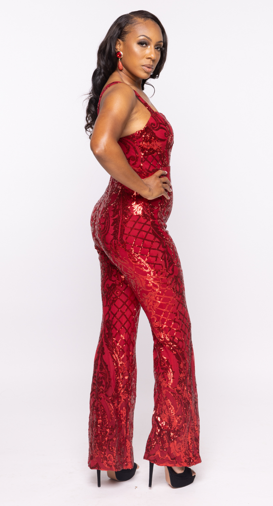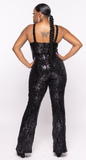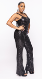 • Strapped Wide Legged Sequin Jumpsuit