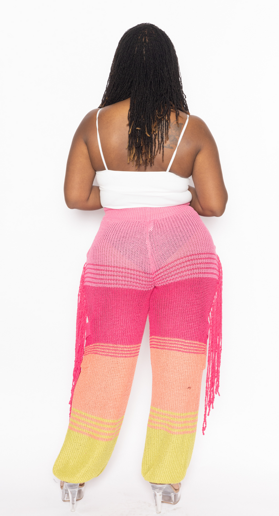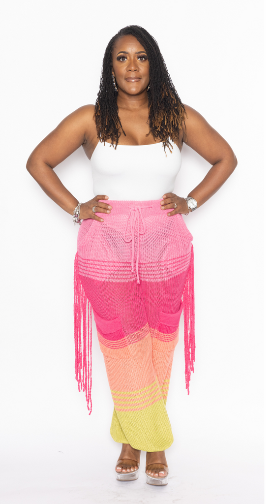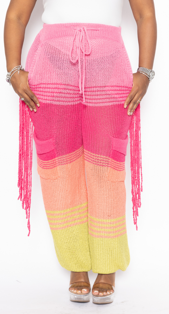 These Knit Rainbow Pants are the perfect way to express yourself! The vibrant colors, fringe detailing, and pockets make them unique.  Dress up or down.