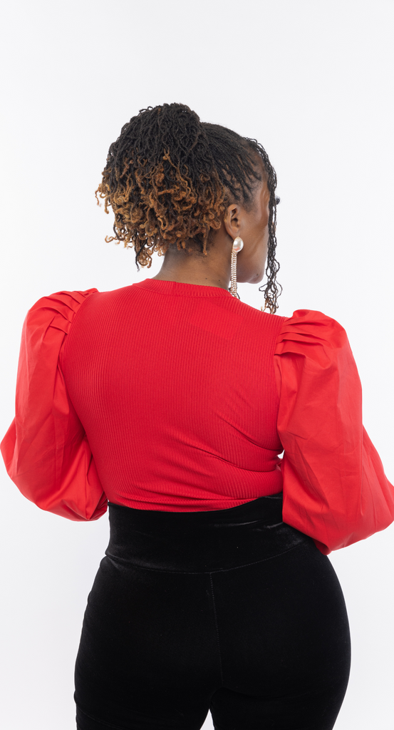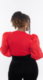 Red puff sleeve blouse