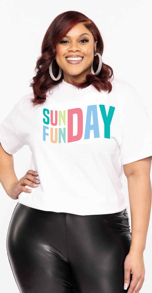 Upgrade your weekend wardrobe with our Sunday Funday t-shirt! Perfect for any casual occasion, this versatile shirt can be dressed up or down. It's a must-have for those who know how to have a good time (and look good doing it) on Sundays!