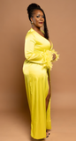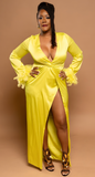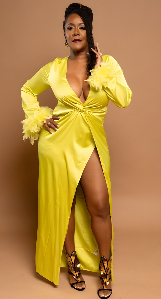 Add a pop of color to your wardrobe with this stunning French Chartreuse Dress! Featuring a vibrant highlighted color, a high split, and a low cleavage, this dress is a must-have for any fashion-forward individual looking to make a statement